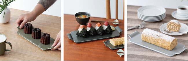 そんな時、こんな器があればもっと楽しい時間になりそう!をかたちにしました。盛り付けやすさ、持ち運びのしやすさ、陶磁器ならではの質感や色彩を意識したサービングトレイ。陶磁器製だからこそ叶える機能とクオリティーを食卓で感じていただければと思います。