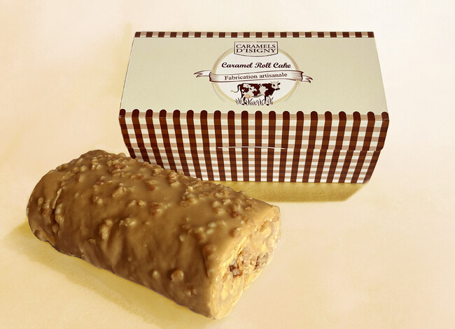 濃厚なコクと上品な甘みが広がるイズニーキャラメルを贅沢に使ったキャラメルロールケーキをお楽しみください。