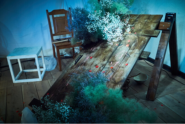 植物の持つエネルギーや神秘性を最大限に引き出す為に、時としてそれらが飾られる空間までも造り込み独特で幻想的な世界観を演出するのを得意とする。