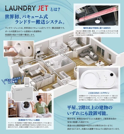 壁の中に洗濯物が吸い込まれていく動画は、再生回数200万回を超え、新しい物好きの欧米セレブリティの中で一気に話題になった話題のランドリーガジェット「Laundry Jet」が日本に上陸!竹橋に体験型ショールームをオープンしました。
