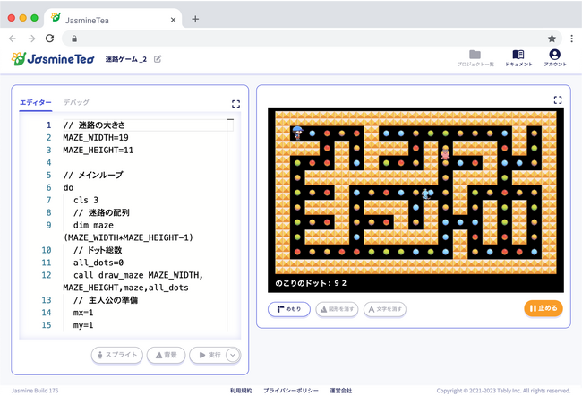 Jasmine Tea https://jasminetea.app/ は、ウェブブラウザーで完結し、楽しみながら学べる機能を搭載したプログラミング学習ツールです。