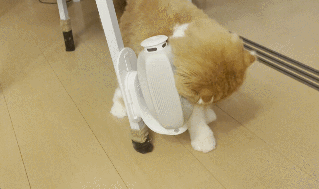 ご主人様が留守にして何も変化がない日中も、自動で回転するブラシが気分転換になり夢中になってグルーミングに勤しみます。