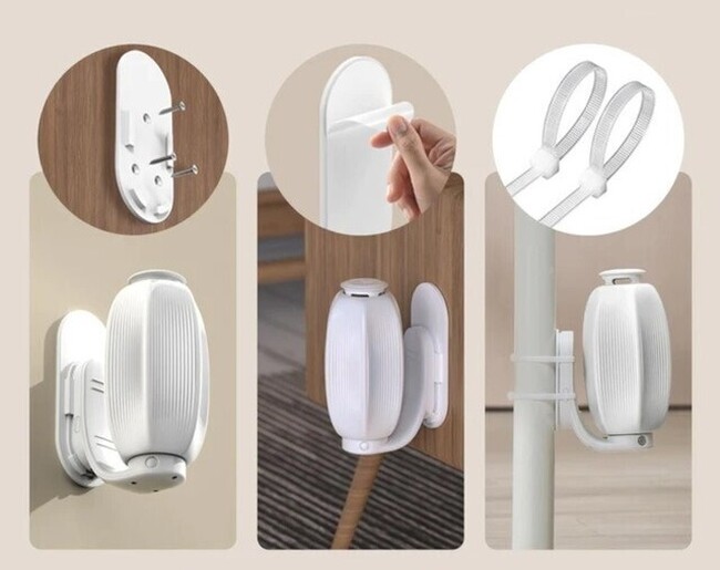 【FURMATIC Automatic Self Groomer Cat Brush】では猫ちゃんが好きな場所でグルーミングできるように、ネジ留め、壁へのテープ貼り、椅子やテーブルの脚用の結束留めの3通りで設置ができます。