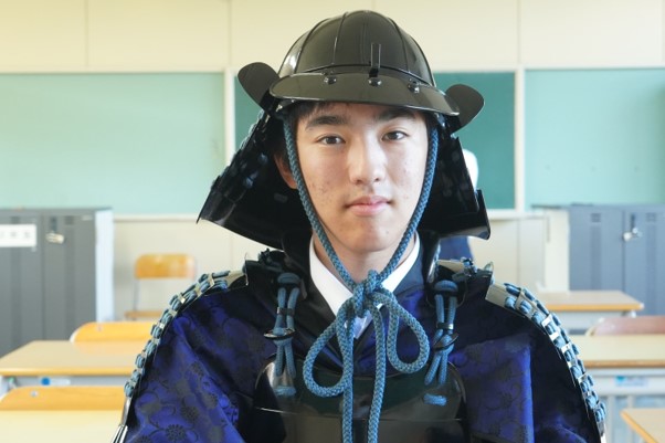 三戸町にある実際の鎧を借りて、本人自らがモデルになりました。