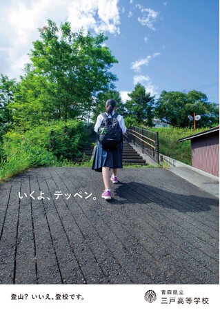丘の上にある高校への登校は急な坂道。でも、その坂を登り切った先にある三戸高校は、夢に向かって切磋琢磨する場所。そんな気持ちを表現しました。