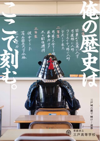 三戸高校は三戸城のすぐそば。そんな歴史をポスターに表現。