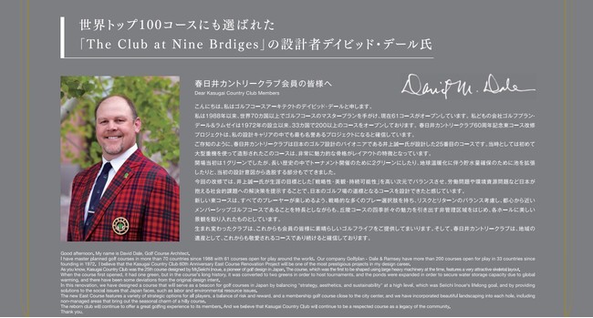 今回の東コースの改修は、ゴルフダイジェスト社が発表する世界トップ100コースにも選ばれた「Club at Nine