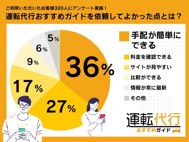 運転代行をご利用頂いたお客様300名様に、運転代行を依頼してよかった点についてお答えいただきました。