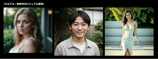 実在のモデルをベースに制作されるAIモデルを用い、多様なメディアコンテンツを制作します。このアプローチは、実際の撮影への依存を減らし、モデリングとアクティングの新たなスタイルを提供します。実写とAI技術の組み合わせが、新しい表現の可能性を広げます。