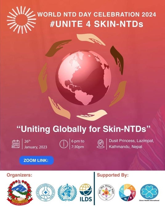 2023年1月23日、東京発-「顧みられない熱帯病」を中心とした疾患・感染症を対象に支援活動を行う特定非営利活動法人クローバーヘルス・インターナショナル(以下、「クローバーヘルス・インターナショナル」)は、1月26日(金)にネパールで開催される「顧みられない熱帯病」国際イベント、「Skin-NTDs and World NTD Day Celebration 2024」にZoom経由で日本からも参加が可能であり、また、同法人の理事長である四津里英もプレゼンテーションに参加することを発表いたします。「Skin-NTDs and World NTD Day Celebration」とは