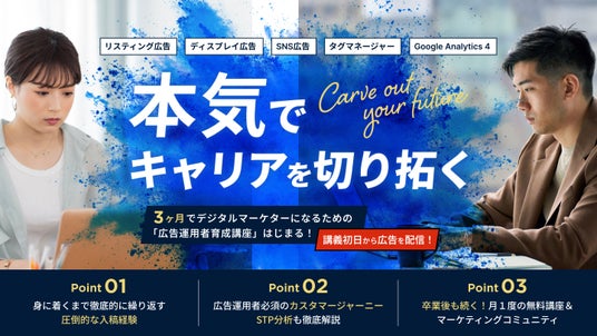 マーケティングスクール「MERC Education」を運営する株式会社MERC(本社:東京都港区、代表取締役社長 福田 正義)は、マーケティング“戦略”領域に特化した「マーケティング戦略講座」に加えて、未経験からデジタルマーケターとしてのキャリアを切り拓くための「広告運用者育成講座」(以下、「本講座」)を2024年1月13日(土)より開講いたします。