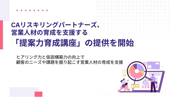 DX・デジタル人材育成を支援する株式会社CAリスキリングパートナーズ(本社:東京都渋谷区、代表取締役社長:伊藤優、以下「当社」)は、営業人材の育成を支援する「提案力育成講座」の提供を開始したことをお知らせいたします。
