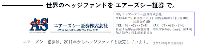 エアーズシー証券株式会社(本社:東京都中央区、代表取締役社長 栗原友紀)は新ファンド「ASシリーズ第2弾」の提供を開始したことをお知らせします。(ASシリーズはファンド・オブ・ヘッジファンズです)