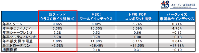 今回エアーズシー証券は、著名なヘッジファンドを組み合わせ、年率シャープレシオ2.28を実現する新ファンドの取り扱いを開始しました。