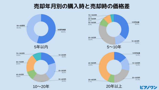 【補足情報3】「中古」で購入したピアノの購入時と売却時の価格差