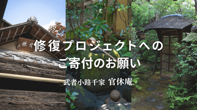 公益財団法人官休庵(理事長:千宗守 、常務理事:千方可)は、千利休から脈々と受け継がれてきた「茶の湯」の伝統を伝承していき、歴代の優れた家元が積み重ねてきた技術・知識・想いを未来につなぐため修復プロジェクトへのご支援を募るクラウドファンディングを2024年1月31日まで実施します。