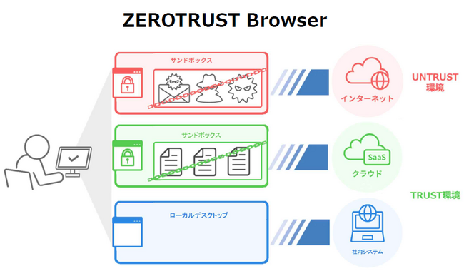アクセス先に応じてブラウザやワークスペースをサンドボックス技術で分離することで、