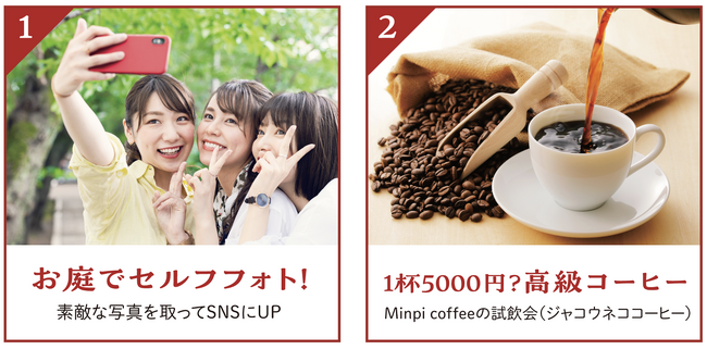 庭園でセルフフォト撮影や高級コーヒーの試飲や軽食が楽しめるイベントです。