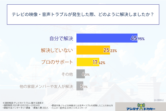 これはプロのサポートを受けることが、テレビトラブルの解決に適していることが調査結果から考えられます。