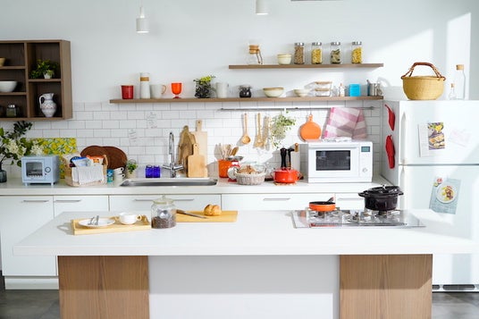撮影でアイランドキッチンを使用している間、サブキッチンで料理の下準備もスムーズに行えます。