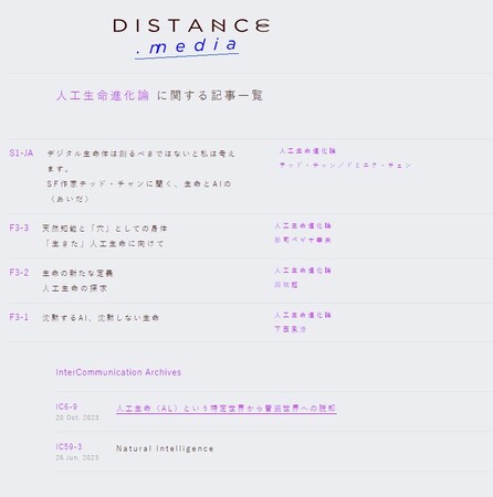 特集 「ALIFE 生命とAIのあいだ」https://distance.media/