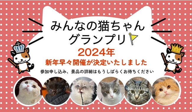 ねこちゃんグランプリ第2回目は、2024年1月開催予定です。現在ねこちゃんの先行エントリーをEメールにて受付中です。先行エントリーしてくださったねこちゃんは、グランプリ開催に先行して、公式SNSで紹介させていただきます。