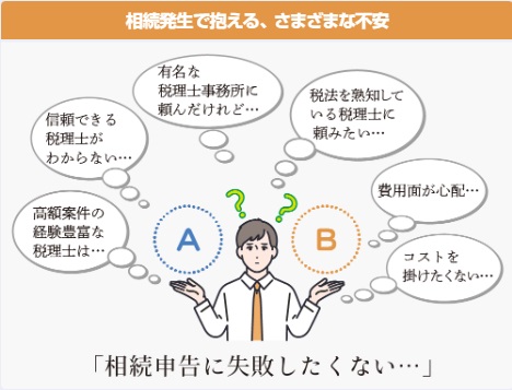 「コストパフォーマンス高い税理士を探している。」「顧問税理士はいるが、個人の財産まで知られたくないので、相続は別の税理士に依頼したい。」「申告期限まであと僅かなので、対応してくれる税理士を探している。」「会社や事業の財産内容だけでなく、自分の財布の中まで税理士に知られたくないので、別の税理士に任せたい。」「遺産分割の係争中なので、経験豊富な税理士を探している。」「相続財産が多額なので、高額な案件の経験がある税理士を探している。」「税務調査の可能性が高いので、税務調査に強い税理士を探している。」「海外財産や特殊な財産があるので、税法に詳しい税理士を探している。」「自分の知り合いの税理士だと、他の相続人から勘繰られるので、皆んなが納得できる税理士に任せたい。」等々。