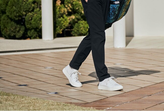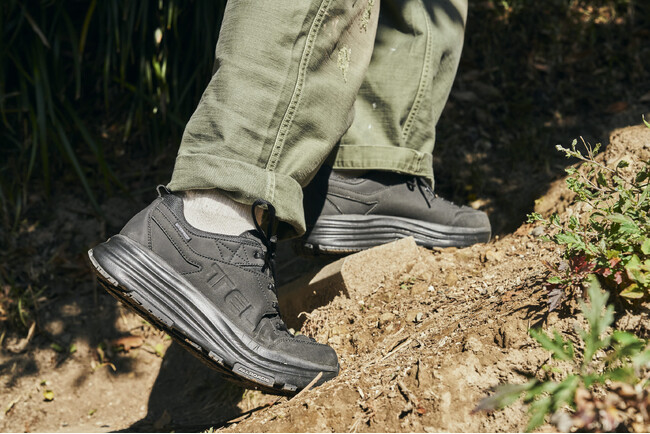 3cmの静水に3時間耐えうる防水と、アッパー部に強い撥水加工を施したナイロン素材を採用したミッドカットシューズ。スーツスタイルにも馴染むよう、シンプルでスッキリとしたデザインに仕上げました。3cmの厚みのアウトソールにTELICインソールを組み合わせたオリジナルソール仕様です。伸縮性のあるシューレースで簡単に着脱可能。 ※通常のシューレース付きなため、お好みに合わせてお付け替えください。