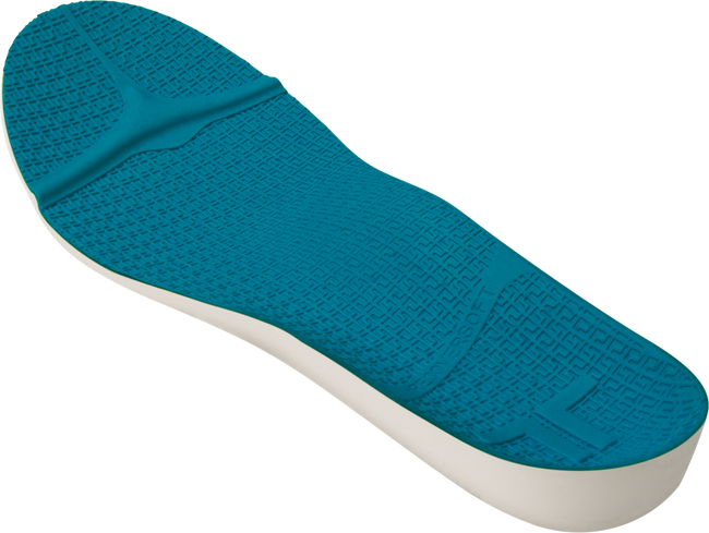 母趾球(ぼしきゅう)と指の間になだらかな傾斜をつけることによりフィンガーフリーの機能を発揮させ、指が地面をキャッチすることをサポート。軽量性だけでなくクッション性や衝撃吸収性も高い次元で実現。素足に優しくフィットし、足底にかかる負担を軽減します。