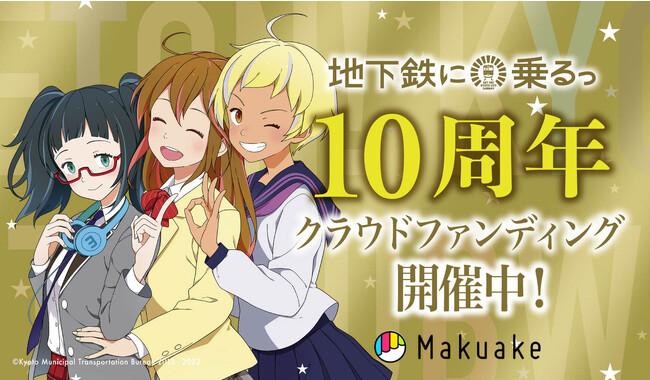京都市営地下鉄のPRコンテンツ「地下鉄に乗るっ」は、今年で10周年を迎えましたが、京都の市営地下鉄・市バスは、コロナ禍で乗客数が激減し、さらに、原油高の影響を受け、京都市交通局は厳しい経営状況にあります。このため、京都市交通局は、毎年恒例であった駅構内に掲出する「地下鉄に乗るっ」ポスター制作を中断している状況です。こういった状況を受け、アニメ制作会社が主体となって、ファンたちと10周年記念のポスターを作り、地下鉄の駅構内に掲出してもらうことを目的にしたプロジェクトです。