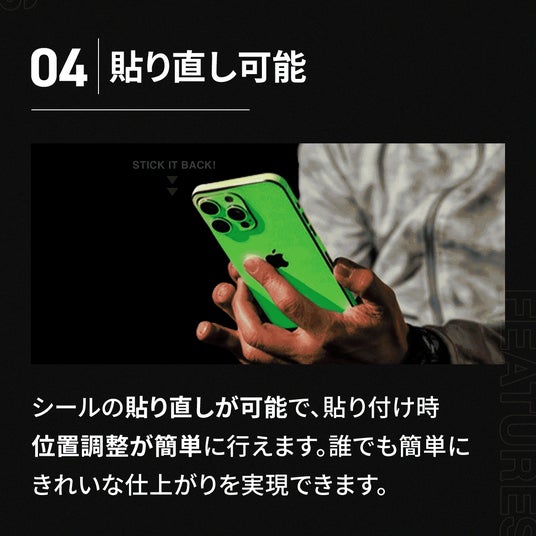 ●超薄型シールで、デバイスのフォルムを変えずに傷の保護と蓄光機能を兼ね備え。