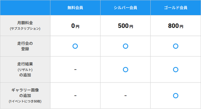 会員プラン:無料会員、有料会員(シルバー会員:月額500円、ゴールド会員:月額800円)