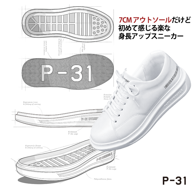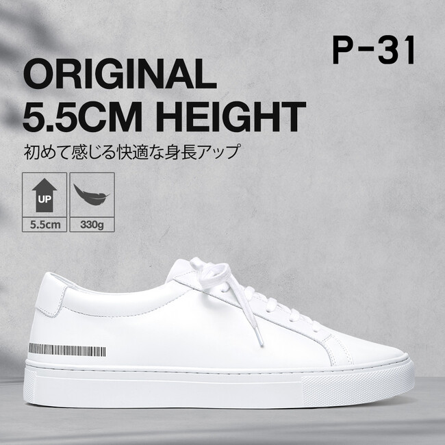 韓国最高のハンドメイドシューズを作るという一念から始まったプロジェクトで、P-31というブランド名は、13項目のテストと実験、そして31段階の工程を経て作られることから名付けられました。大韓民国の国民全員が上質の白いスニーカーをリーズナブルな価格で履けるよう、各分野の専門家が参加して製作されたP-31 BLACKLABEL。最も理想的なトーンのホワイトカラー、5cmのシークレットヒール、履き心地の良さ、どんなスタイルにも合うベーシックな定番。11ヶ月の製作過程を経てついに完成しました。