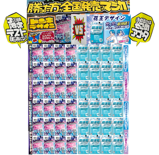 花王メンズビオレとドン・キホーテは、お客様の声や投票、売上実績をもとに全国発売するボディシートを決定するテスト販売を、MEGAドン・キホーテ渋谷本店をはじめとした国内3店舗で2023年11月20日(月)より順次開始いたします。