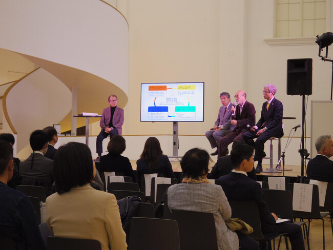 大阪・関西万博の現状進捗を公益社団法人2025年日本国際博覧会協会副事務総長高科淳理事から、京都府として万博に向けての取り組みを山下晃正副知事から、そして大阪・関西万博を盛り上げる学術団体イベント学会として、関西・歴史文化首都フォーラム推進委員会福井昌平座長から本フォーラムの趣旨を説明。その後、1200年京都歴史文化のレガシーに向け、京都の課題を踏まえ、何を目指すべきか?を熱くディスカッション。