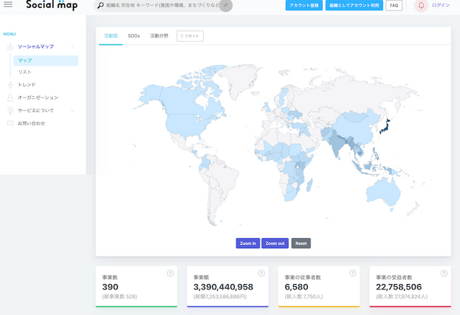 「Social map(https://socialmap.jp)」は、日本国内のCSOデータベースを基に、CSOの組織強化を促進するWEBサービスです。2023年10月には「パートナーシップ」機能(ベータ版)を実装し公開をしました。「パートナーシップ」機能では、企業とCSOの双方が有する“連携”に関するニーズや強みをデータ化し、信頼できる共創パートナー候補のサーチ・コミュニケーションを図れることが特徴です。