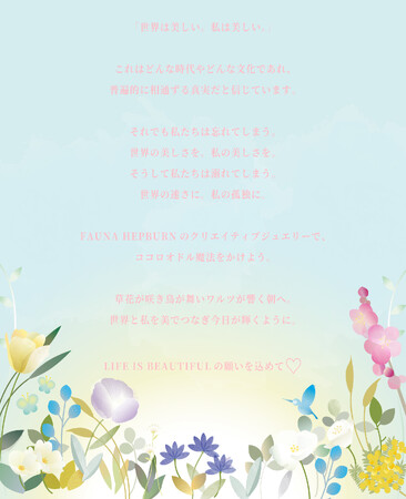 ファウナヘップバーンを身に纏うことで、内面も外面も美しさで満たされ、毎日が光り輝くように願いを込めて制作しております。
