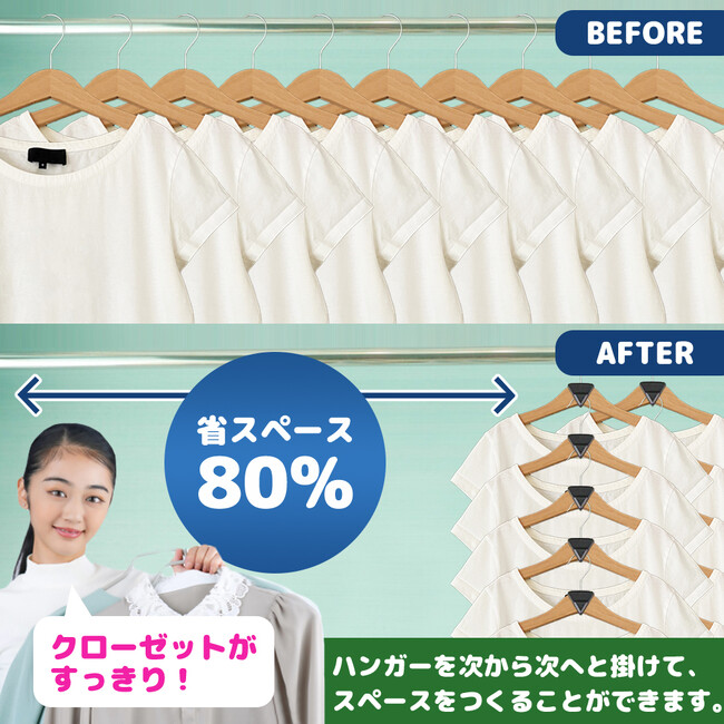 ハンガーに別のハンガーを引っかけるだけで、スペースを有効活用することができます。パンパンに詰まったキャビネットをすっきりできる便利なアイテムです。