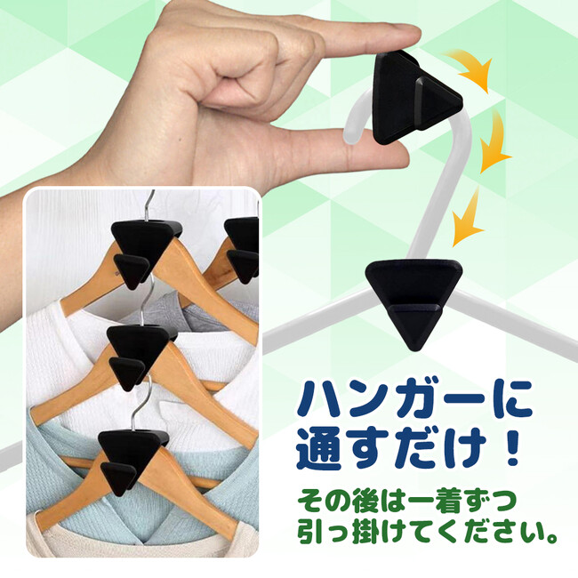 ハンガーに【スキマ△】(すきまさんかく)を通すだけです。