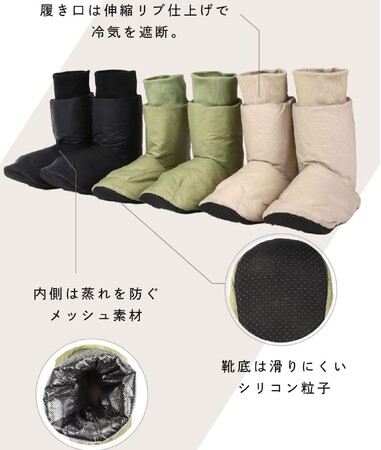 4.ルームシューズは内側がメッシュ、足底は滑らない、暖かく足元までぽっかぽか