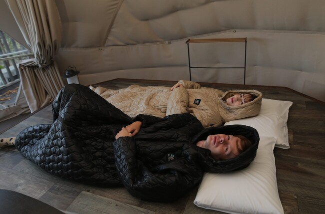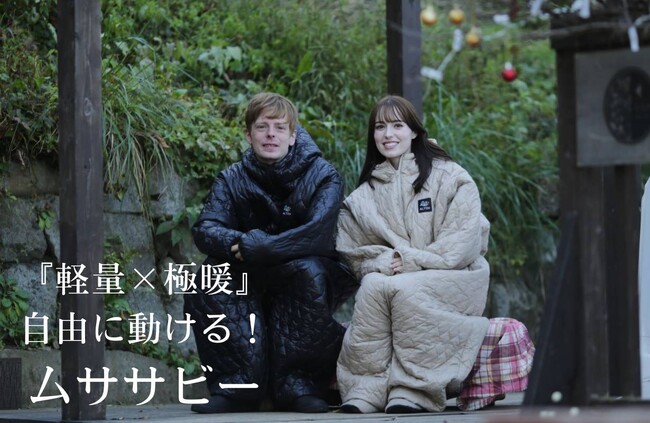 着る寝袋『ムササビー』は、宇宙服素材の超断熱「エアロゲル」を中綿に使用し、軽量×極暖を実現!在宅・防災・アウトドア・スポーツ観戦とあらゆるシーンの防寒対策に使える「自由に動ける寝袋」です。