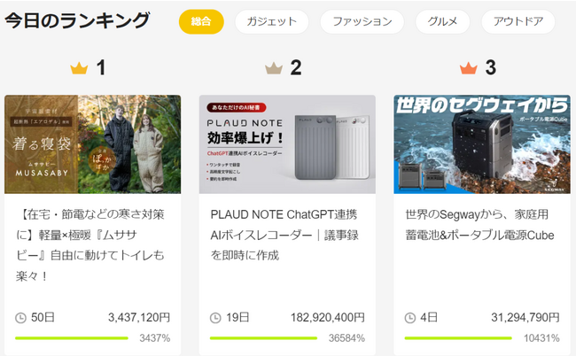 Makuake 販売開始1日で3,000,000円超を達成!今日のランキング「第1位」を獲得!