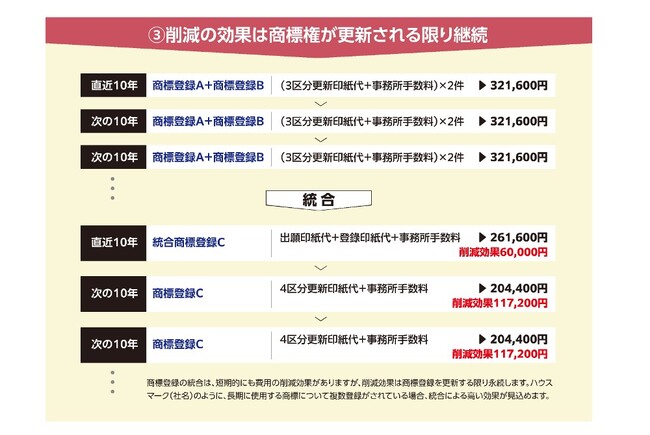 商標登録が複数に分かれていることは、事業者にとって余計な費用負担になっています。それにもかかわらず統合が進んでいない理由の一つは、統合のための作業負担が膨大であり、統合のための出願費用が削減効果より割高になる可能性があったからです。