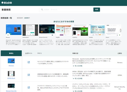 株式会社BizDB(本社:東京都新宿区、代表:松崎、以下「BizDB」)は、世界中の事業をデータベース化し検索できるプロダクト「BizDB」のα版をリリースしました。