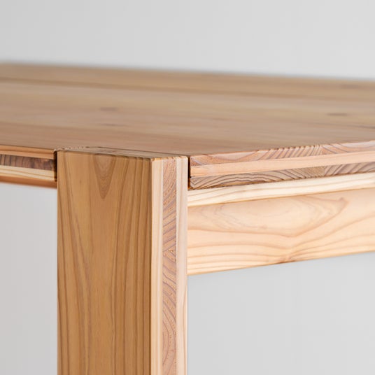 TOMORI のイベント・店舗什器の家具には、国産のスギ材を積層した製材品「インテリアCLT」を使用しています。インテリアCLT は、日本の林業・木材産業の大きな課題となっている国産のスギ・ヒノキの大径木を有効活用できる新しい製材品です。