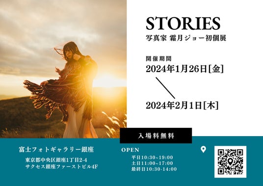 物語性のあるポートレート作品を中心として作家活動を行う【写真家 霜月ジョー】の初となる個展をついに開催します。様々な物語を表現したコンセプトであることから個展名を『STORIES』としました。2021年から写真を始めて、2023年より写真家活動を開始。2023年は写真展にて賞を立て続けに受賞し、SNSフォロワー1万人を記念した作品集の制作も決定。2024年は飛躍の年になるであろう写真家の個展にぜひお越しください。