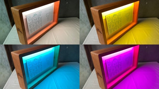 ZUKOUSHITU製木製フレーム。RGBで色調を変化させられるLEDライト付き。