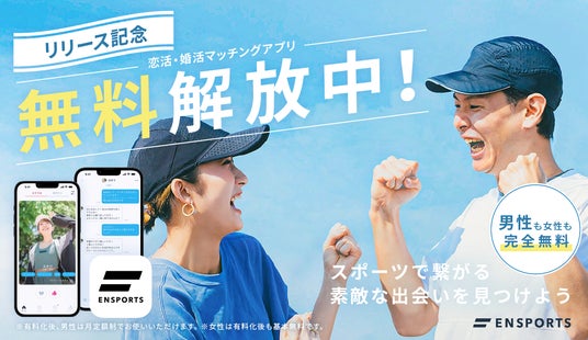 このたび「スポーツでつながる出会い」をコンセプトとした、スポ活・恋活・婚活マッチングアプリ『ENSPORTS(エンスポーツ)』のリリースが決定いたしました。