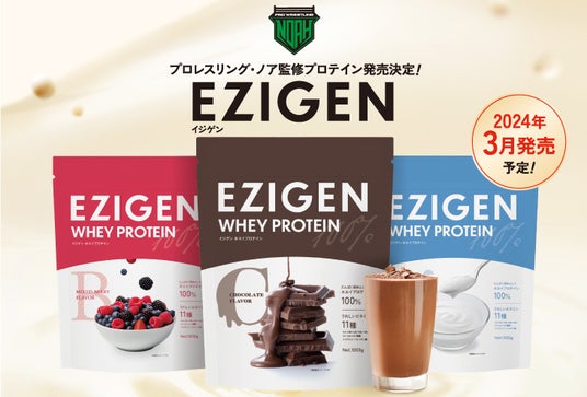 グロリアス製薬株式会社(本社:東京都渋谷区、代表取締役:島尻久嗣)はプロレスリング・ノア(運営会社:株式会社CyberFight、本社:東京都新宿区、代表取締役:高木規)が監修するプロテイン『EZIGEN(イジゲン)』の商品発売を本日発表。本日2024年1月2日よりAmazon・楽天にて、先行予約の受付を開始いたしました。
