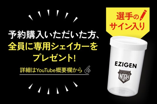 予約購入をしてくれた『全員』に選手のサイン※入り『EZIGEN専用シェイカー』をプレゼント!予約購入特典のお申込みは、2024年2月29日まで。
